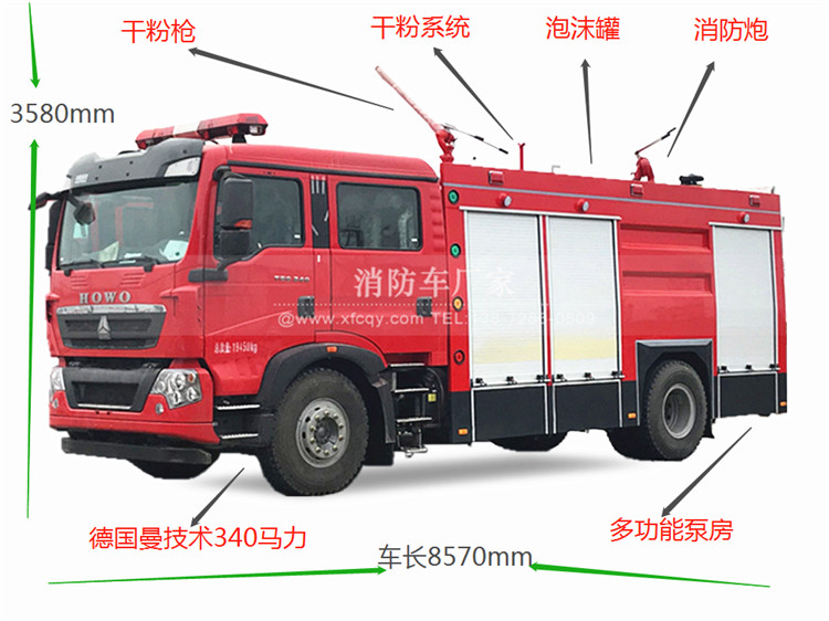 重汽T5G/8噸干粉消防車